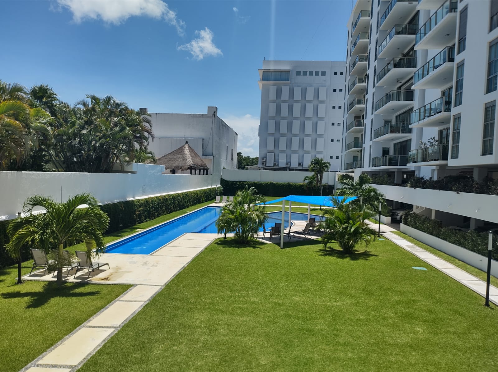 Amenidades; alberca con carril de nado, amplios jardines y áreas comunes, gimnasio con regaderas, acceso controlado, seguridad 24 horas, zona super segura y de alta densidad.